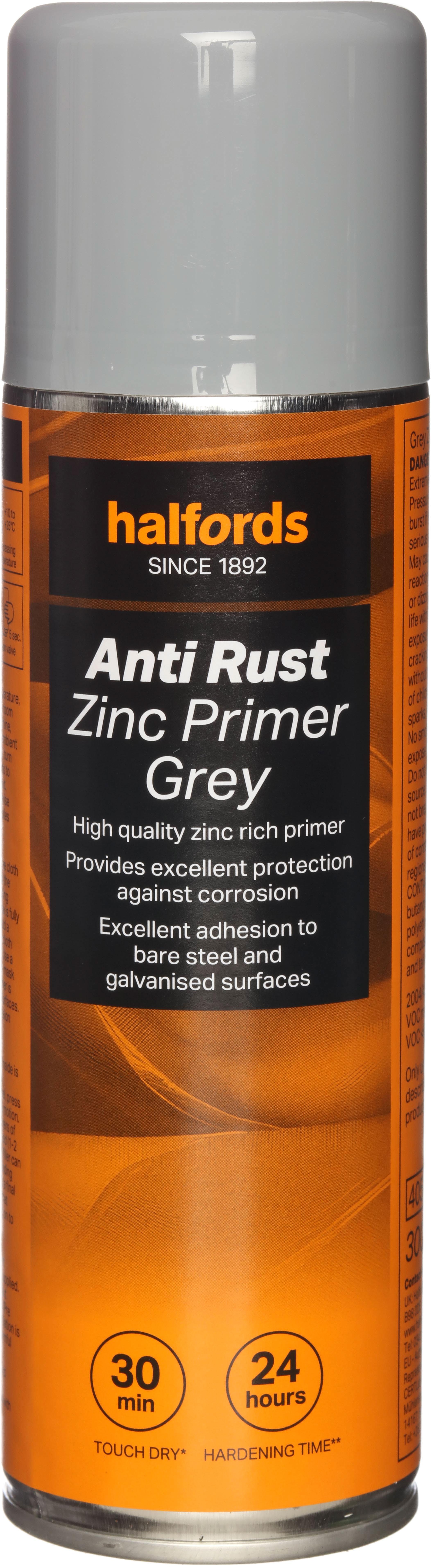 The Halfords Anti-Rust Zinc Primer Grey (300ml) is a high-quality, Zinc rich primer designed to offer excellent protection against rust and corrosion. It adheres to bare steel and galvanised surfaces smoothly, to make application quick and easy.Preparing for Primer