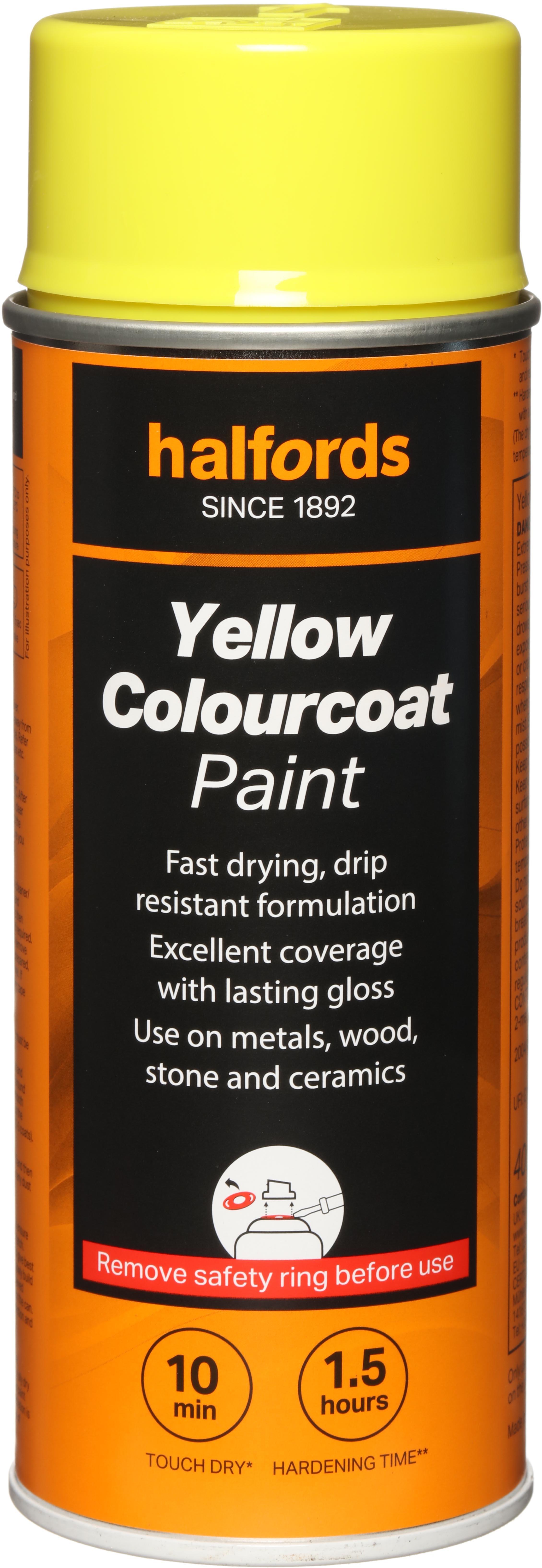 Halfords Colourcoat Machine Yellow 400mlis the ultimate versatile paint, giving great coverage on a variety of surfaces with a long-lasting gloss.