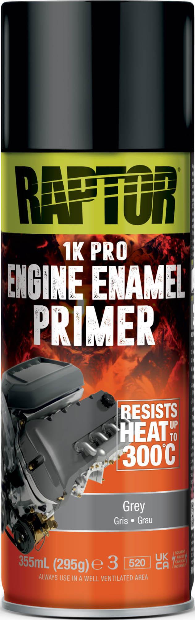 A professional quality engine enamel, ideal for use on engine blocks, engine accessories and other surfaces in the engine compartment. RAPTOR Engine Enamel contains ceramic resins that resist temperatures up to 300°C and is 5x tougher than ordinary paints to provide superior protection from heat, oil and other automotive fluids. It’s easy to use and dries fast to give an attractive, smooth finish with excellent adhesion that will not blister, flake, crack or peel. Suitable for use on all types of primed metals (steel, aluminium and alloys)