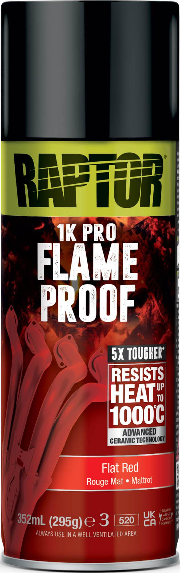 A professional quality flameproof paint, ideal for use on exhaust manifolds, headers, exhaust systems and other areas that require protection from very high heat. RAPTOR Flameproof is based on advanced ceramic technology and high heat-resistant pigments that withstand temperatures up to 1000°C and is 5x tougher than ordinary paints. Once fully cured it provides superior protection from heat, oil and other automotive fluids. It’s easy to use and dries fast to give an attractive, smooth finish with excellent adhesion that will not blister, flake, crack or peel. Suitable for use on all types of primed metals including steel and alloys.