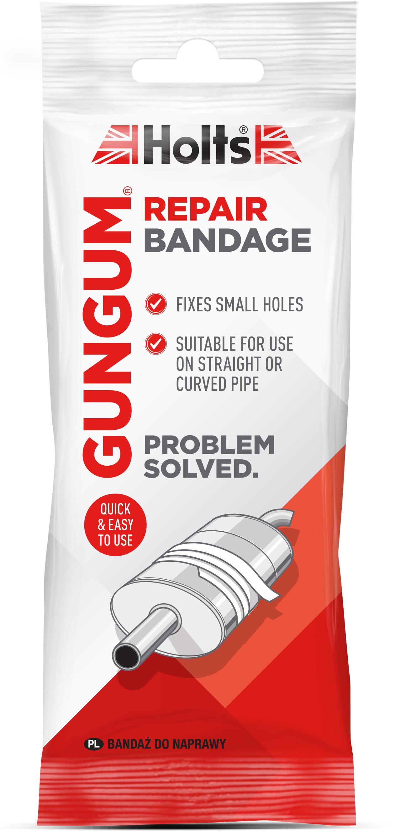 The Holts Gun Gum Exhaust Repair Bandage is a car exhaust repair product which been developed to repair smaller holes and splits in your exhaust system at home. The bandage is easy to use, simply wrap around and seal for a permanent gas tight seal. You can also use it with Holts Gun Gum Paste for end plate leaks and small holes. The bandage is easy to use; simply moisten and wrap around the hole, then allow to dry and harden.
