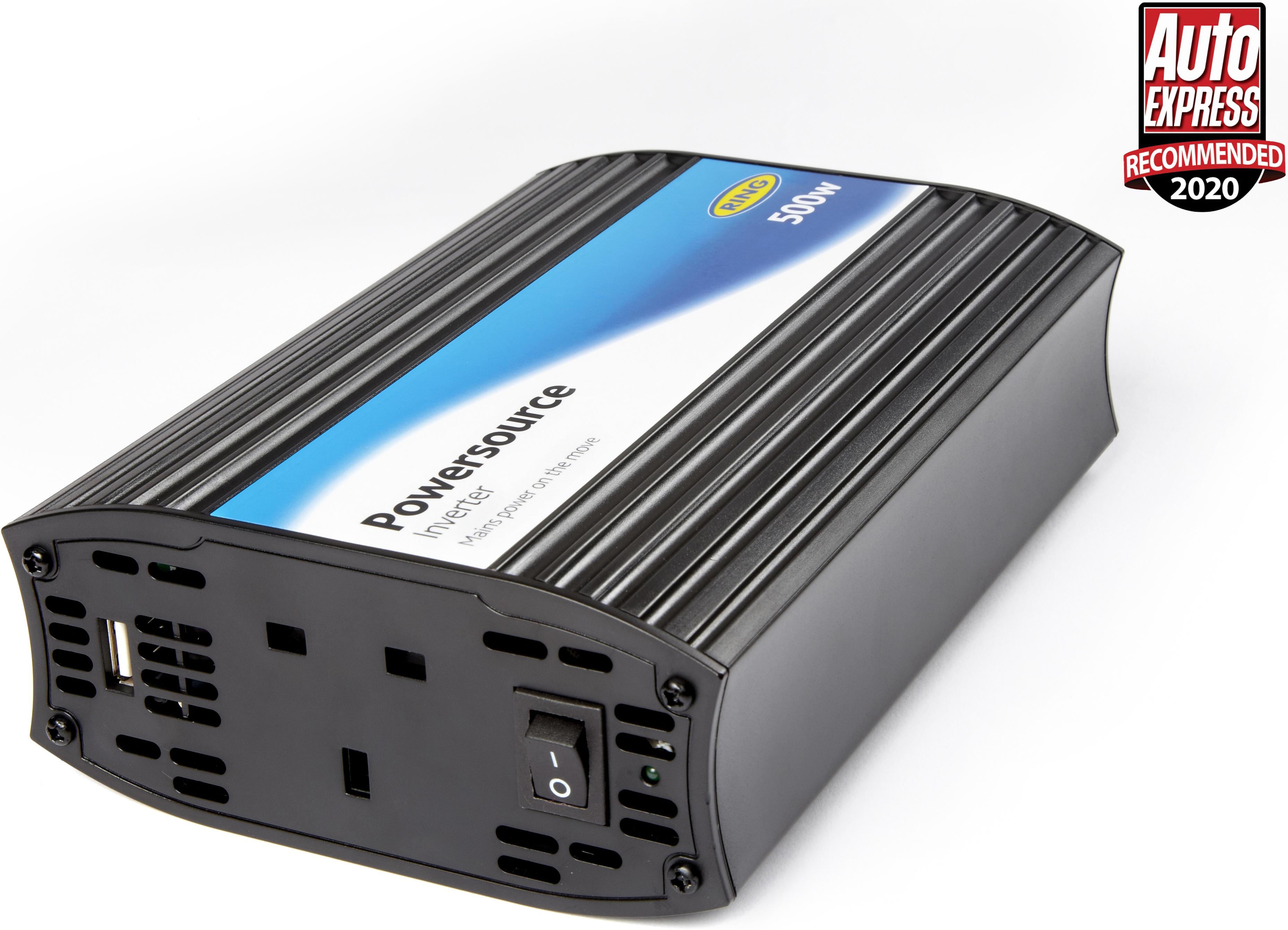 The Ring Automotive PowerSource Inverter 500w RINVU500 is an ideal leisure accessory and is safe to use on equipment rated up to 500w such as medium power tools, colour televisions with DVD players, battery chargers etc. A perfect addition to your toolkit.