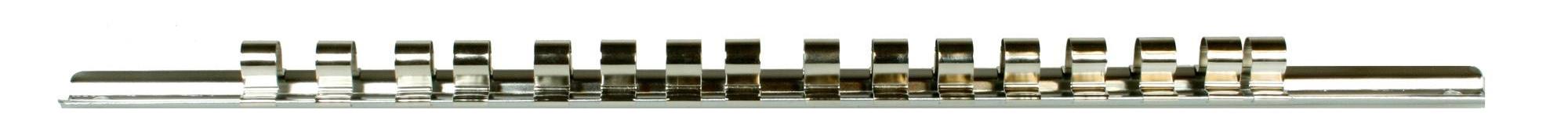 The Halfords Advanced Storage Rail is designed to hold 16 x 3/8" drive sockets and is covered by the Lifetime Guarantee*.