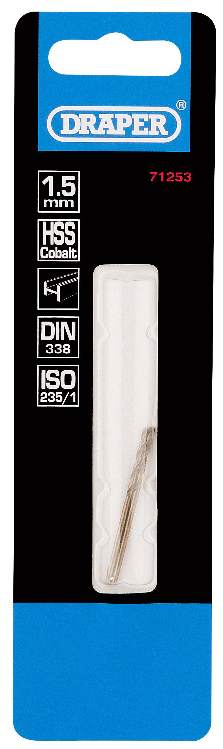 The Draper 2 Piece 1.5mm HSS Cobalt Drill Bit is ideal for use with the rotary drills on cast, sintered and non-ferrous metals, steel, plastic and wood.