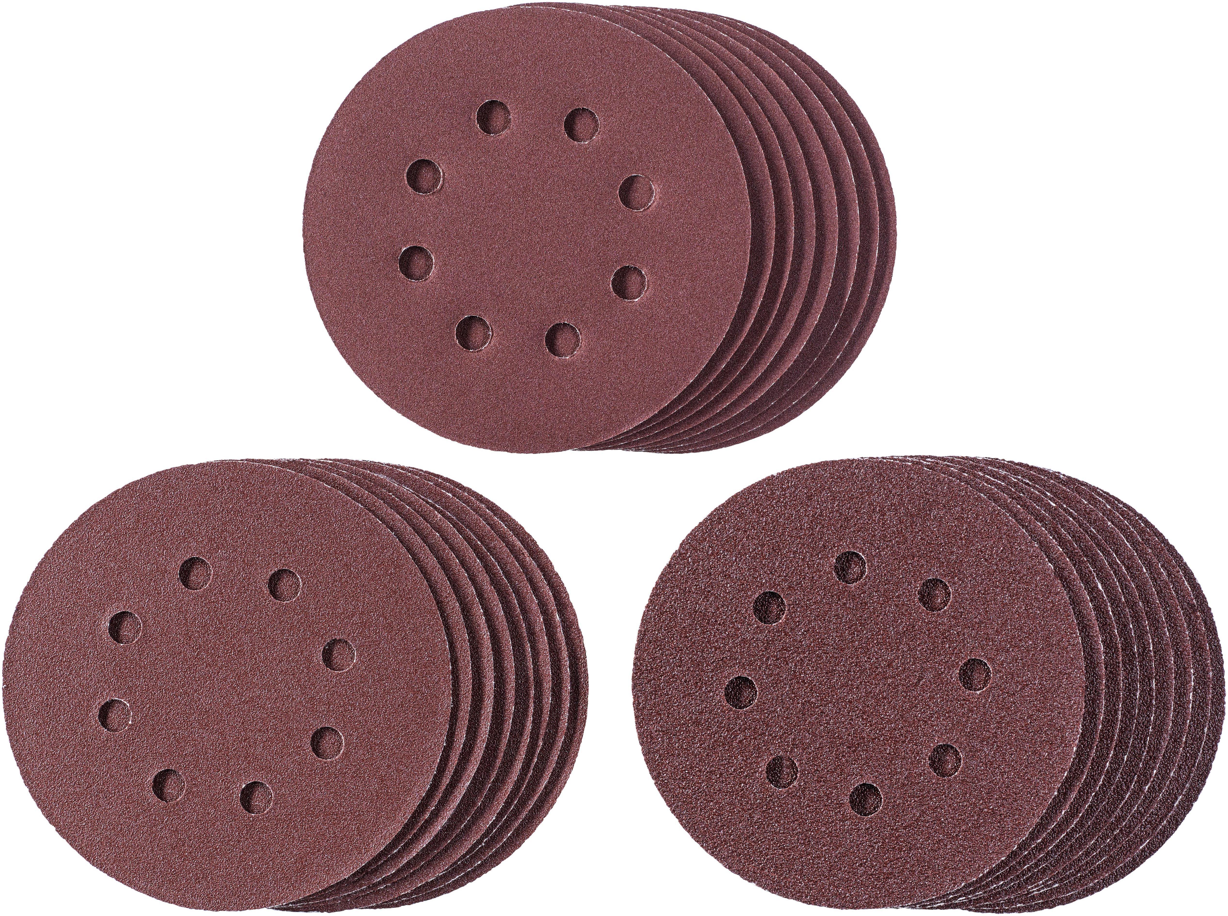With the Original Einhell 25-piece abrasive paper set, large areas of wood or metal can be smoothed quickly, precisely and cleanly. Thanks to the 8 perforations, the discs are suitable for use with an extraction system. The Quick-Stick system enables the abrasive discs to be changed without tools thanks to the strong hook-and-loop backing. The different grit sizes mean you will always have the right abrasive for every project. The sanding discs are suitable for all commercially available rotary sanders with a diameter of 125 mm. All abrasive discs in this set have a diameter of 125 mm The set contains 25 discs with three different grit sizes: 9x P60, 8x P120 and 8x P180.