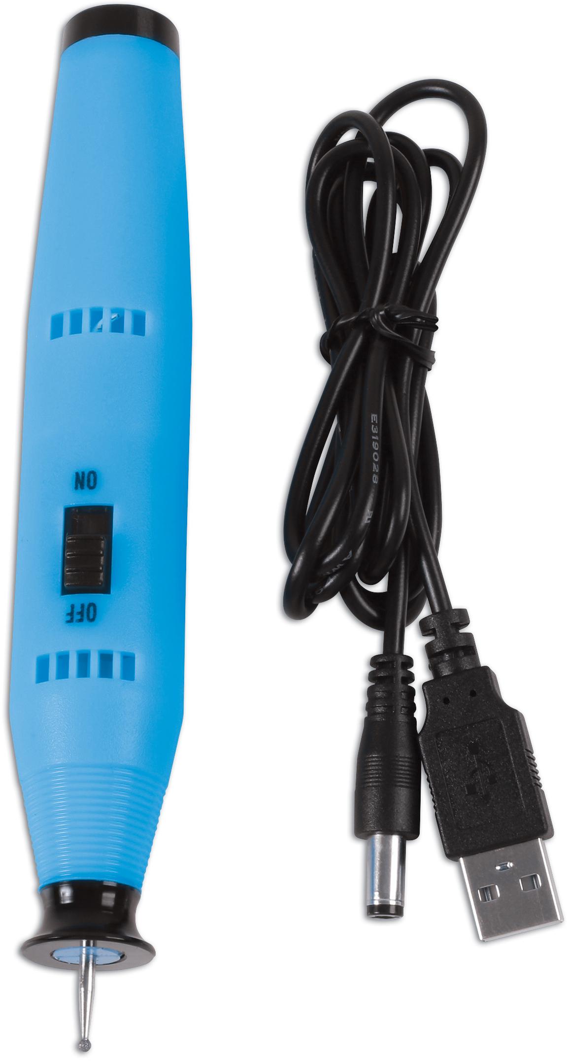 The Engraver with USB cable (120cm) engraves on any surface and rotates at 14-16000rpm. It has a single diamond tip for an easy use. It can be powered by computer USB, power bank or adaptor (Input 100-240v - Output 5v2A).