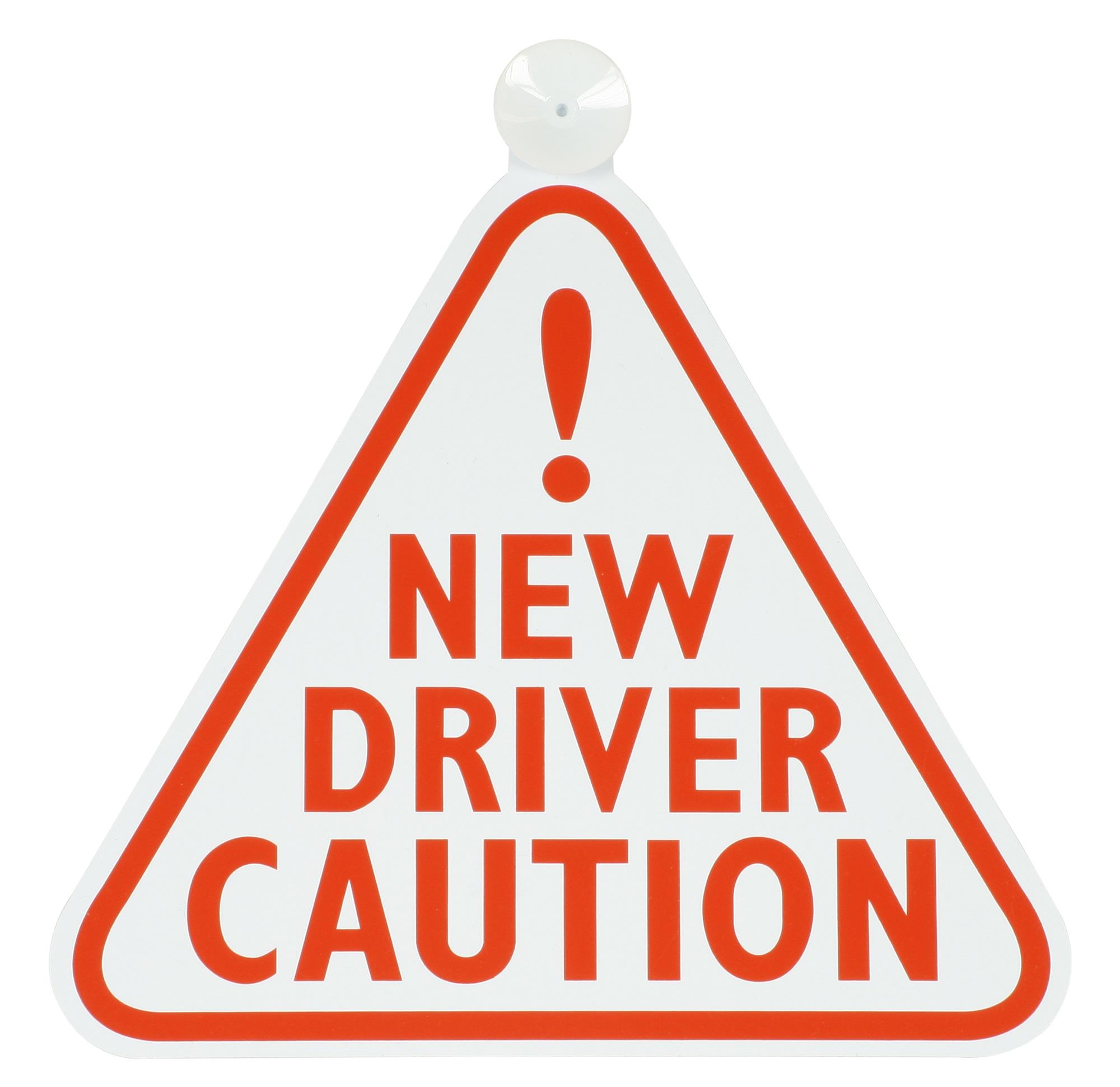 The Halfords New Driver Sign stays in place with a plastic sucker.