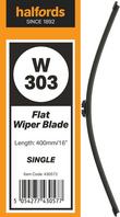 The Halfords Rear Flat Wiper W303 rear single flat wiper blade features a technological tensioned metal strip for precise uniform distribution of pressure along the wiping edge.