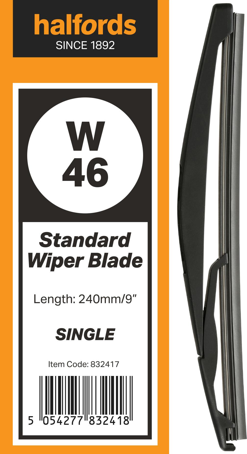 The Halfords W46 Wiper Blade - Single is a standard rear wiper blade offering a good quality wiper performance to ensure you maintain clear visibility. It comes with a pre-fitted connector so that you are ready to attach straight out of the box.