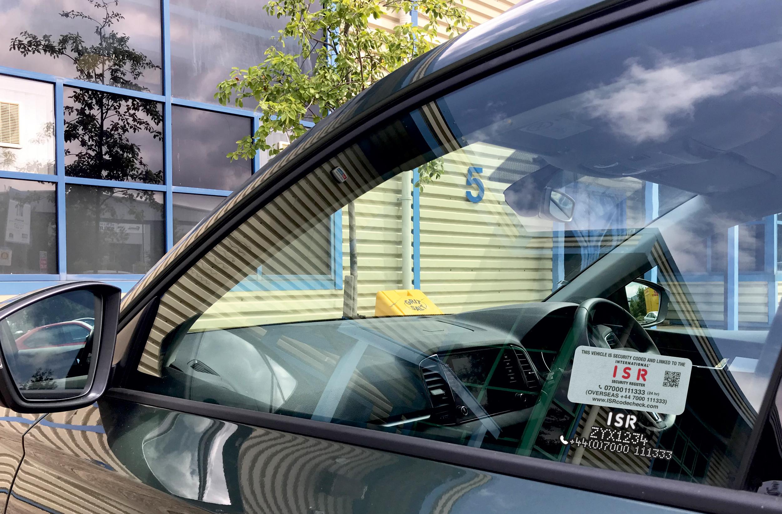 The service consists of visibly etching all the windows of a vehicle with the logo of the International Security Register (the ISR) and a code unique to the vehicle. The unique code is linked to a fully certified and secure database used by all Police Forces in the UK!