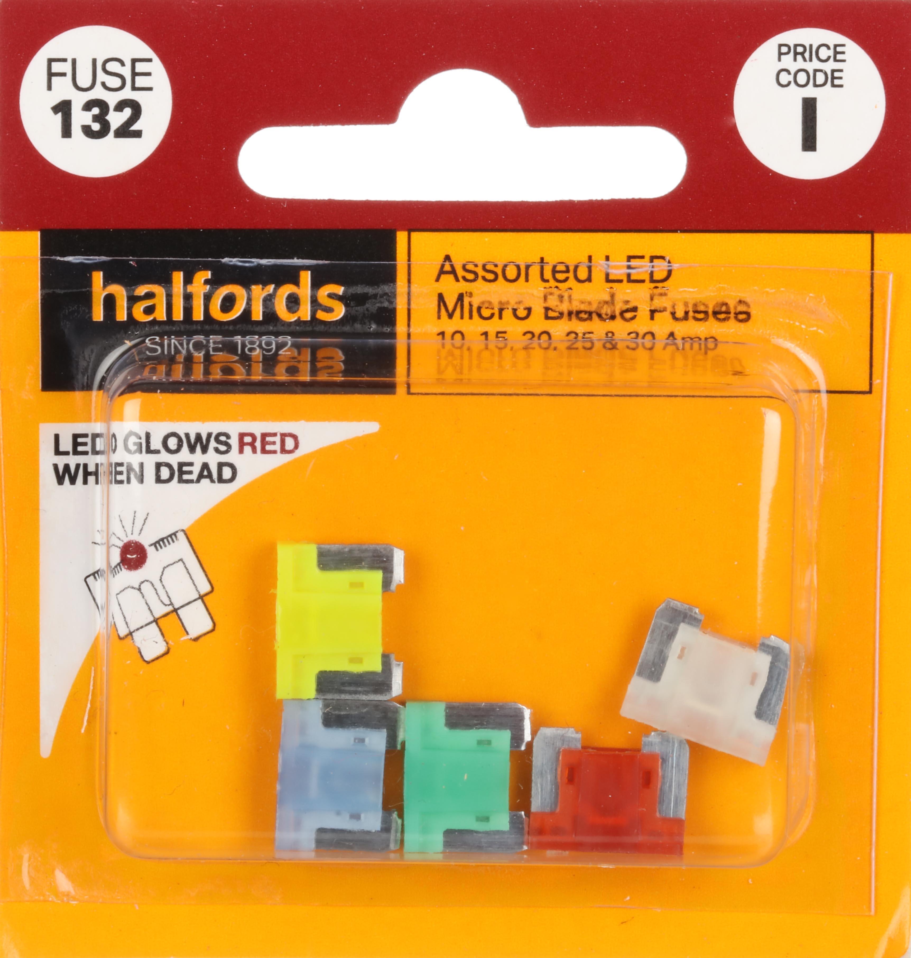 The Halfords Assorted pack of LED Micro Fuses that glow red when blown for easy identification.
