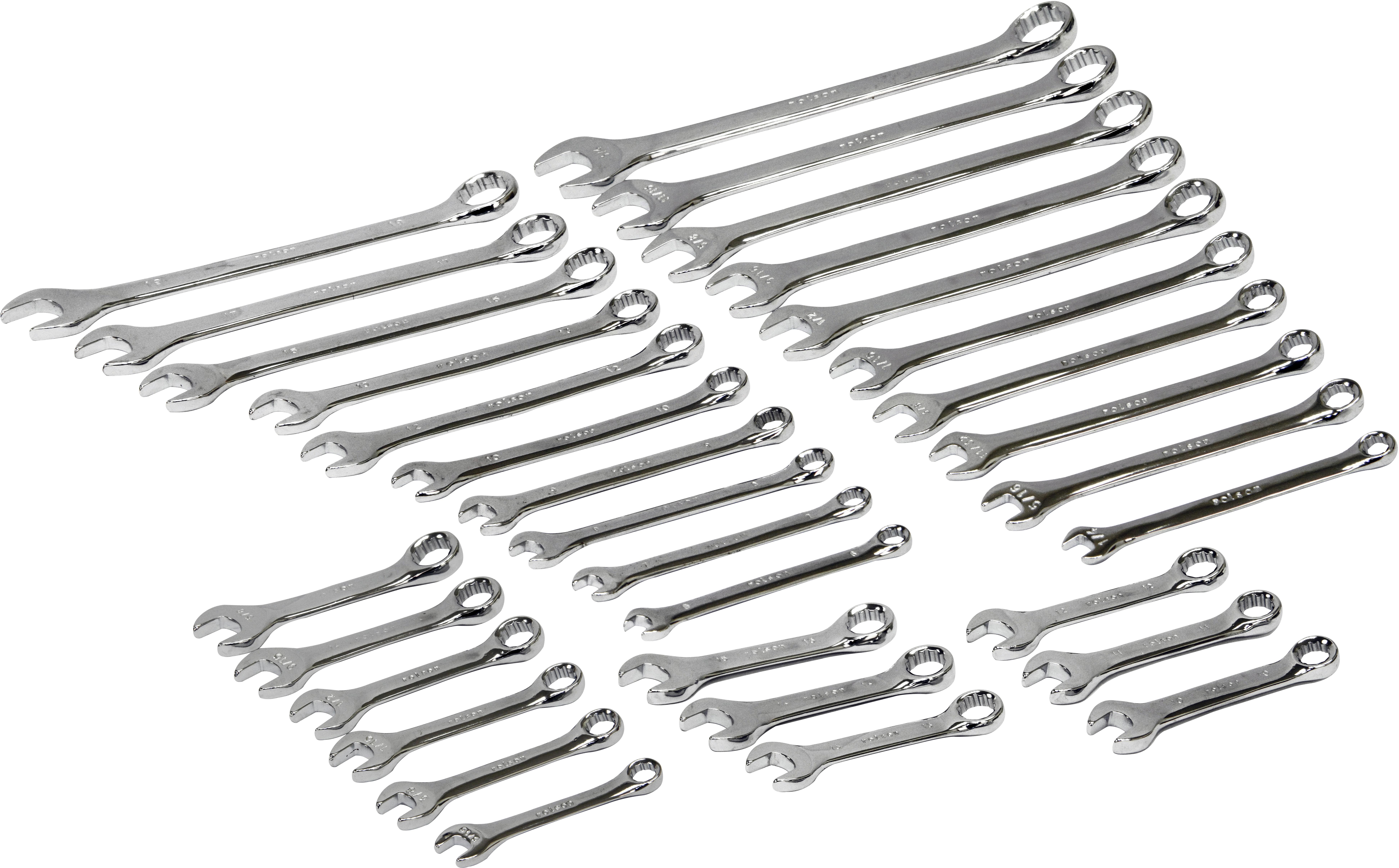 The Rolson 32pc Spanner Set CRV, a combinaton Spanner Set manufactured from Chrome Vanadium steel, heat treated & fully polished.